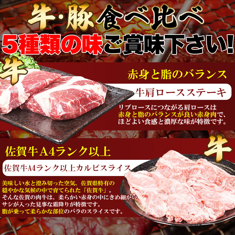 佐賀牛と慶寿もち豚を含む、肉好き必見の豪華5種盛り!お家で楽しむ、極上焼肉♪
